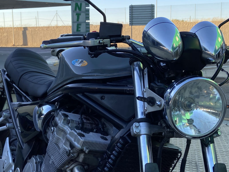 Recibimos la moto para homologarla ya que se habían realizado unas trasformaciones que no cumplian con la normativa actual. El depósto incorporado era anterior al año de fabricación de la moto, el asiento no presentaba ninguna sujección estable, La posición de los intermitentes no cumple la norma actual de tráfico, y el porta matrículas como las luces traseras no soportan la normativa anti impacto.